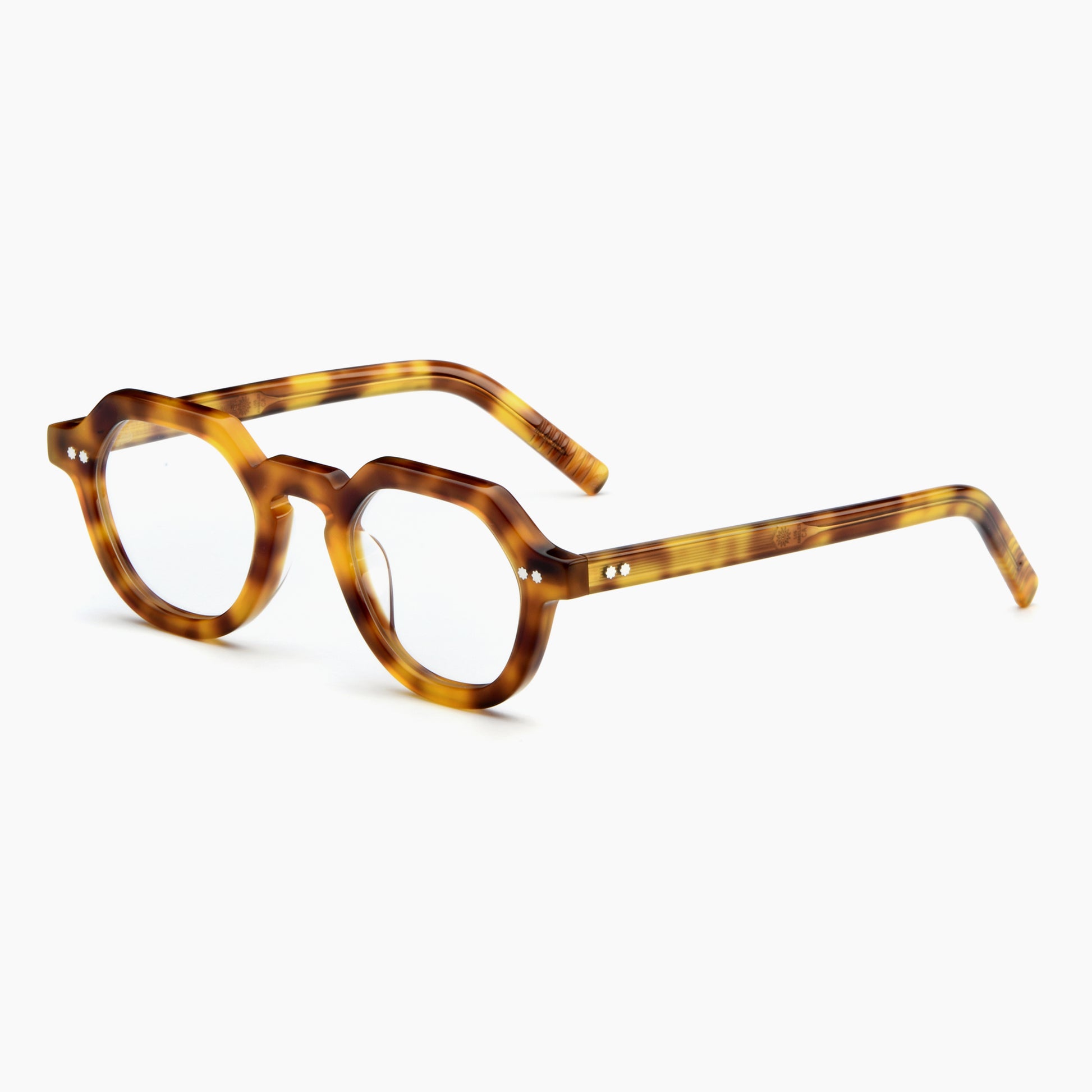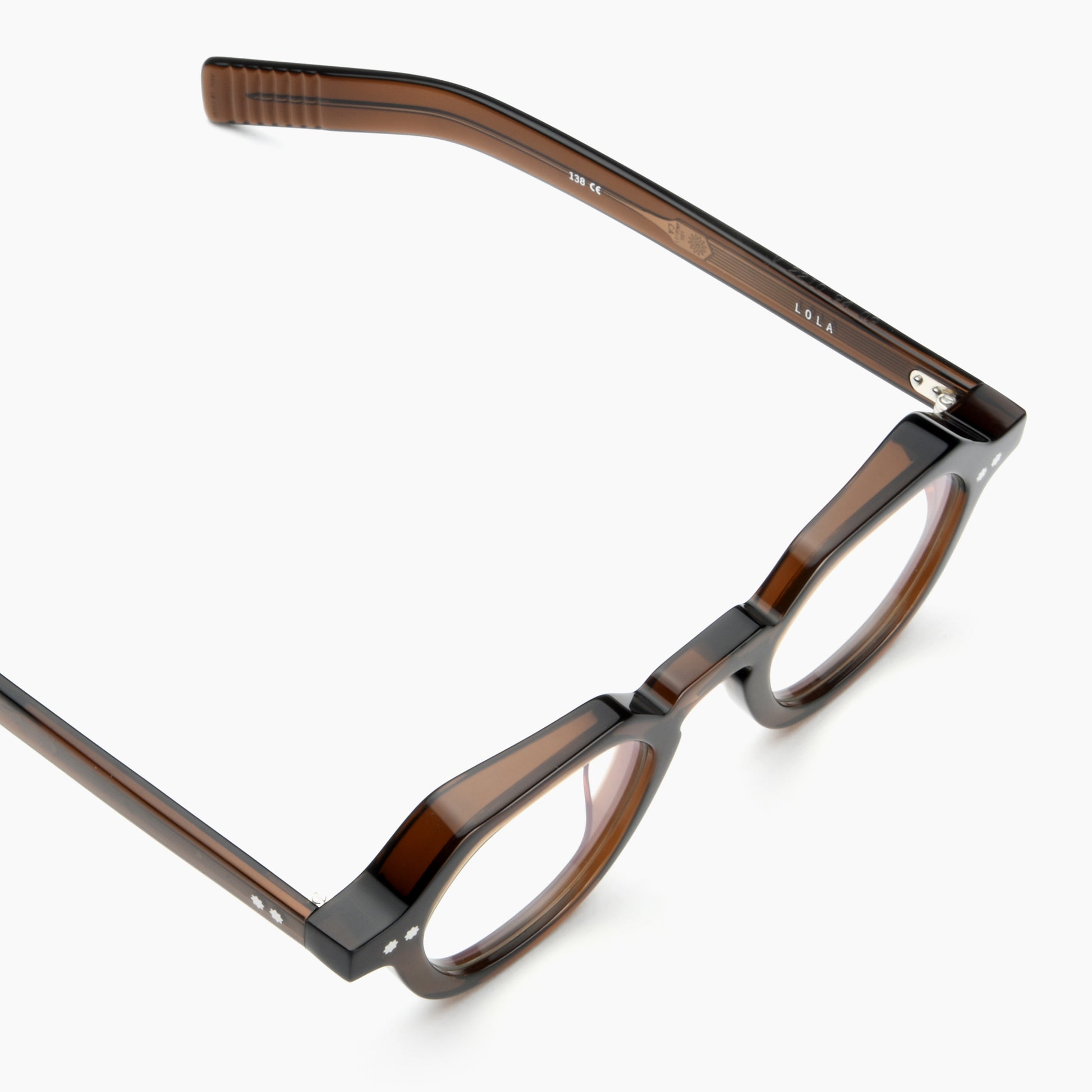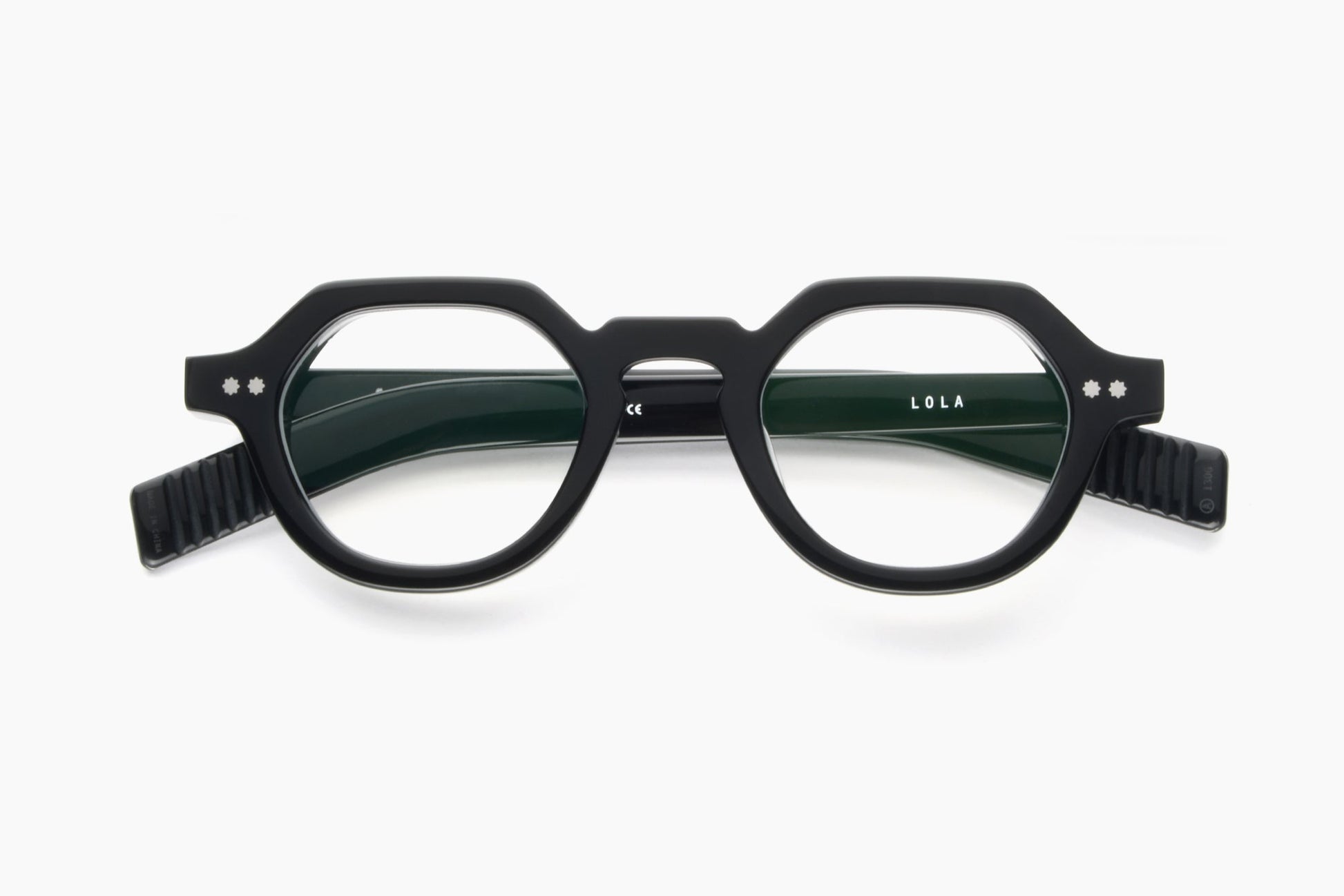 Lola is a modern look with subtle design quirks to be appreciated by detail-minded observers. Built with extra thick acetate, these glasses exude contemporary vibes with flat-topped round frames, star-shaped rivets, and paddle-shaped temples.