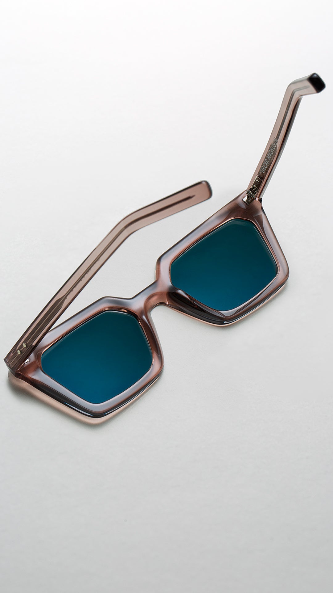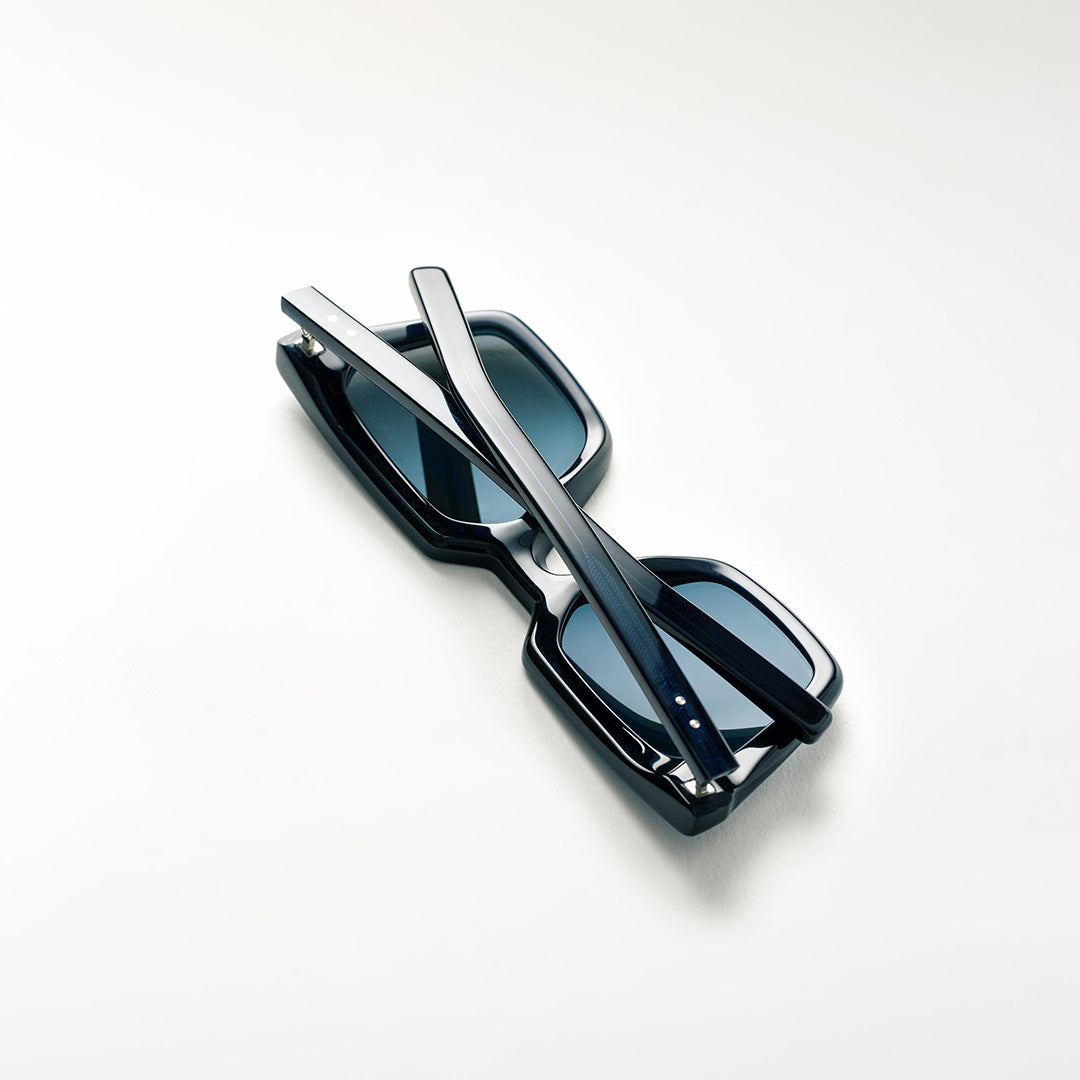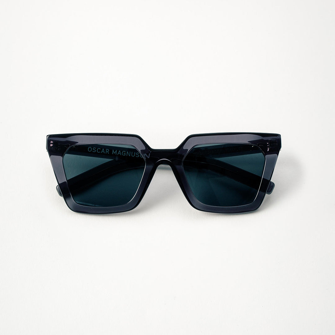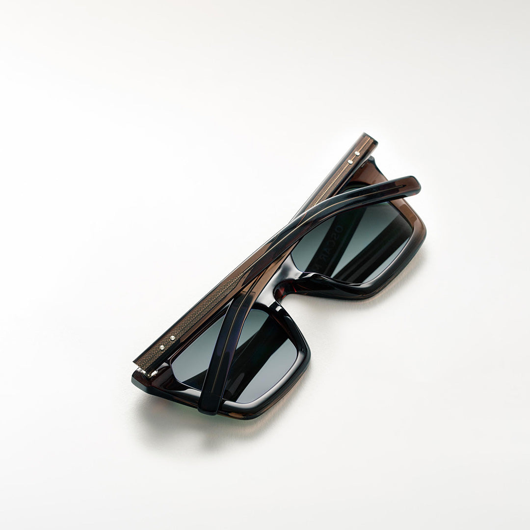 The 'Gaff' sunglasses from the OM.3 collection. Handmade with bio-acetate, featuring an square design with balanced dimensions, solid construction, and stick temples.