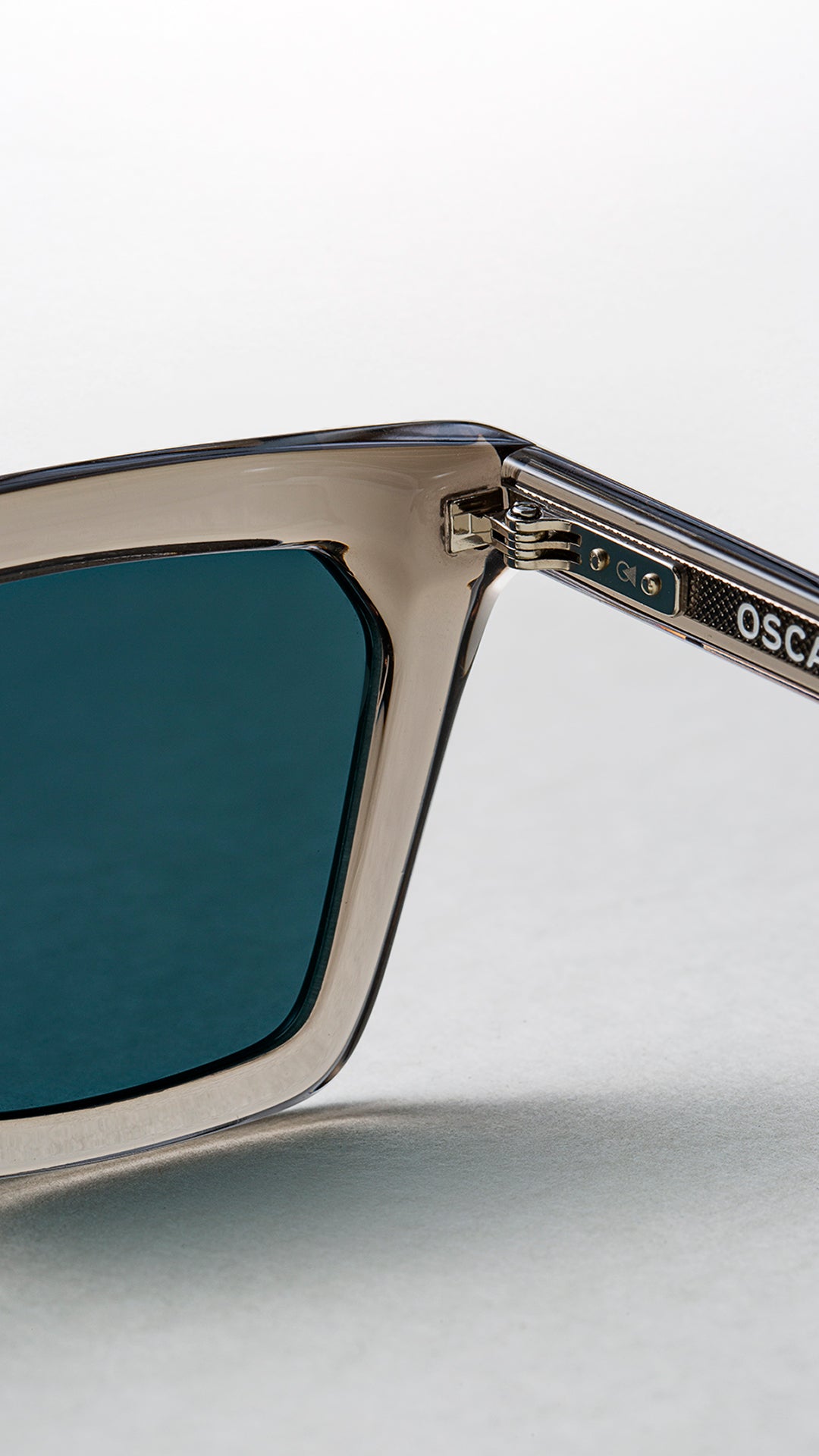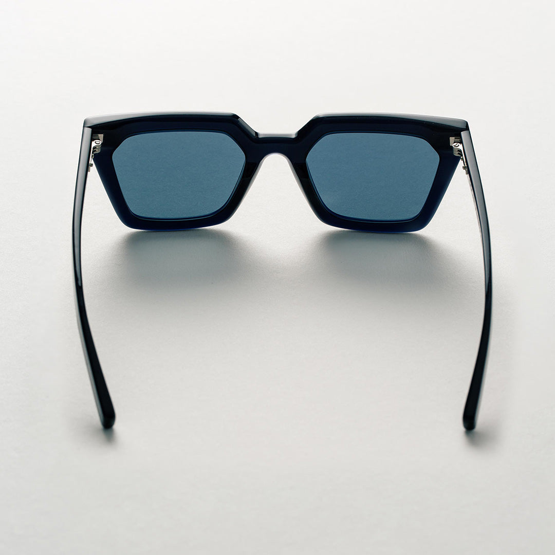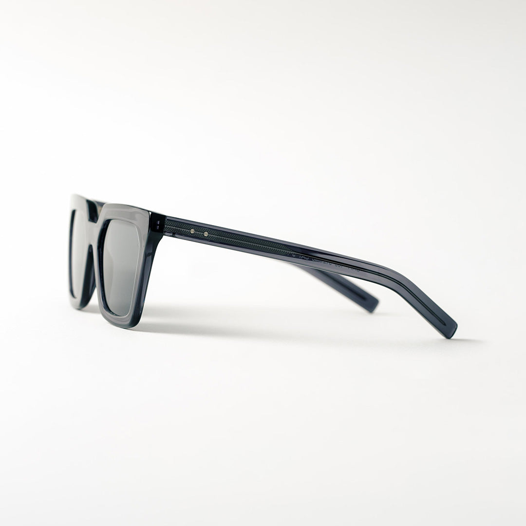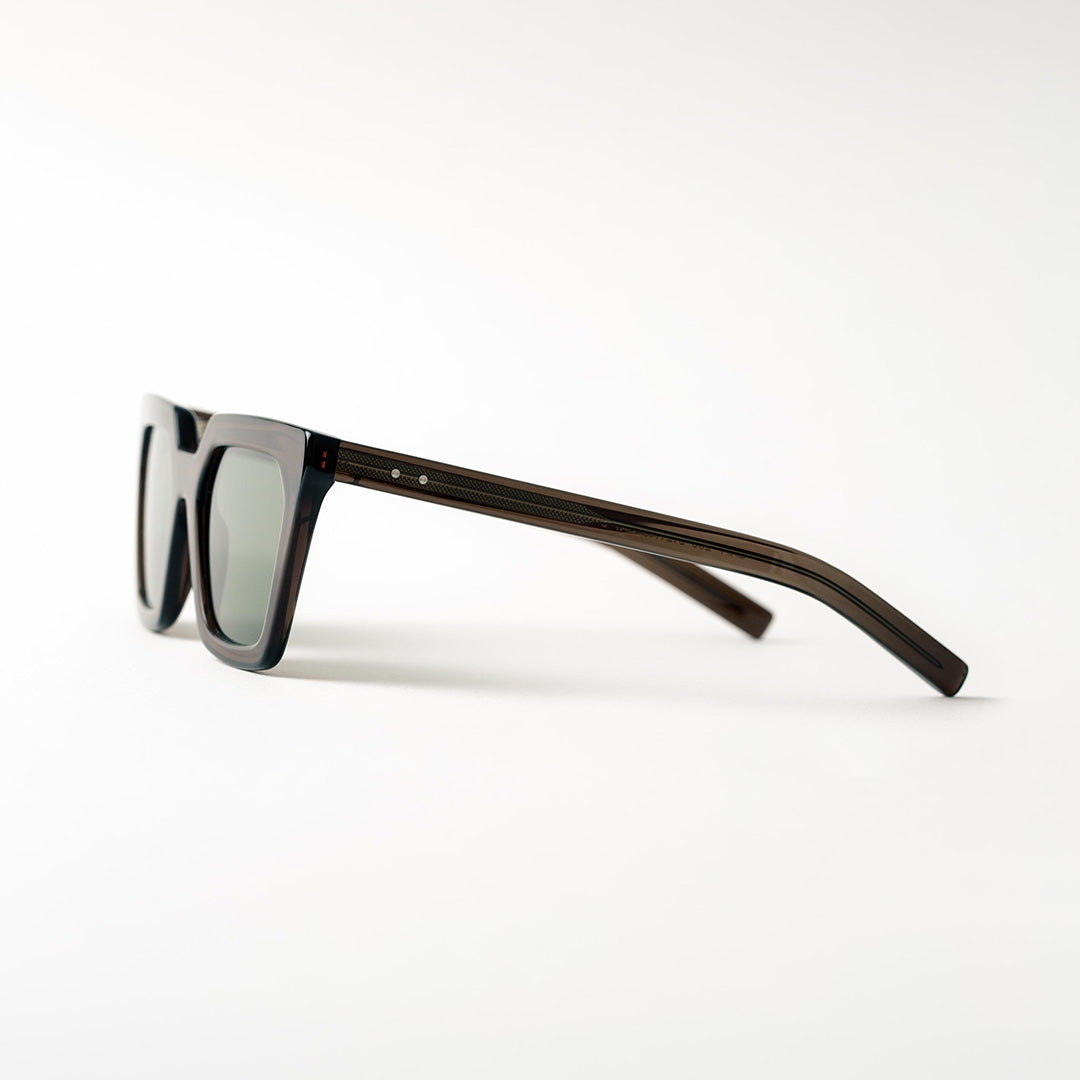 The 'Gaff' sunglasses from the OM.3 collection. Handmade with bio-acetate, featuring an square design with balanced dimensions, solid construction, and stick temples.