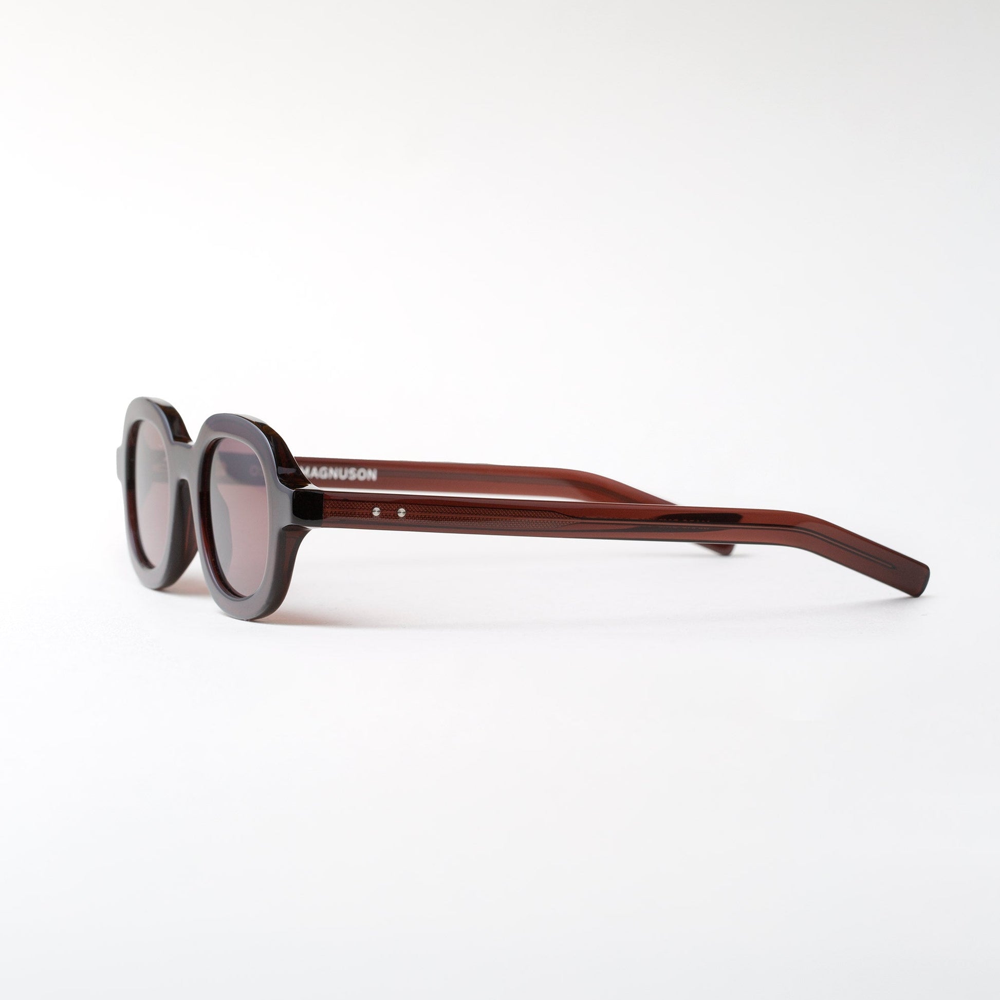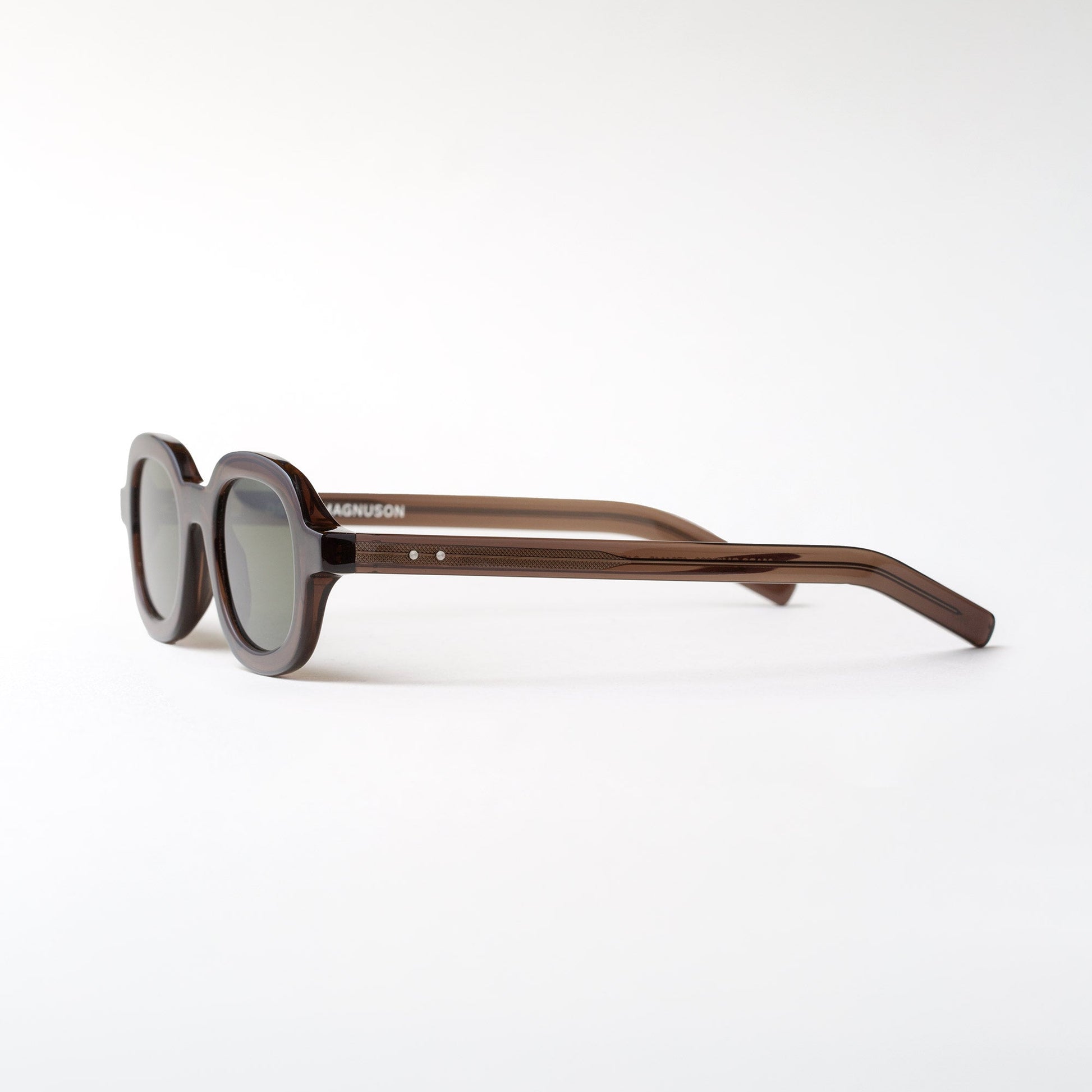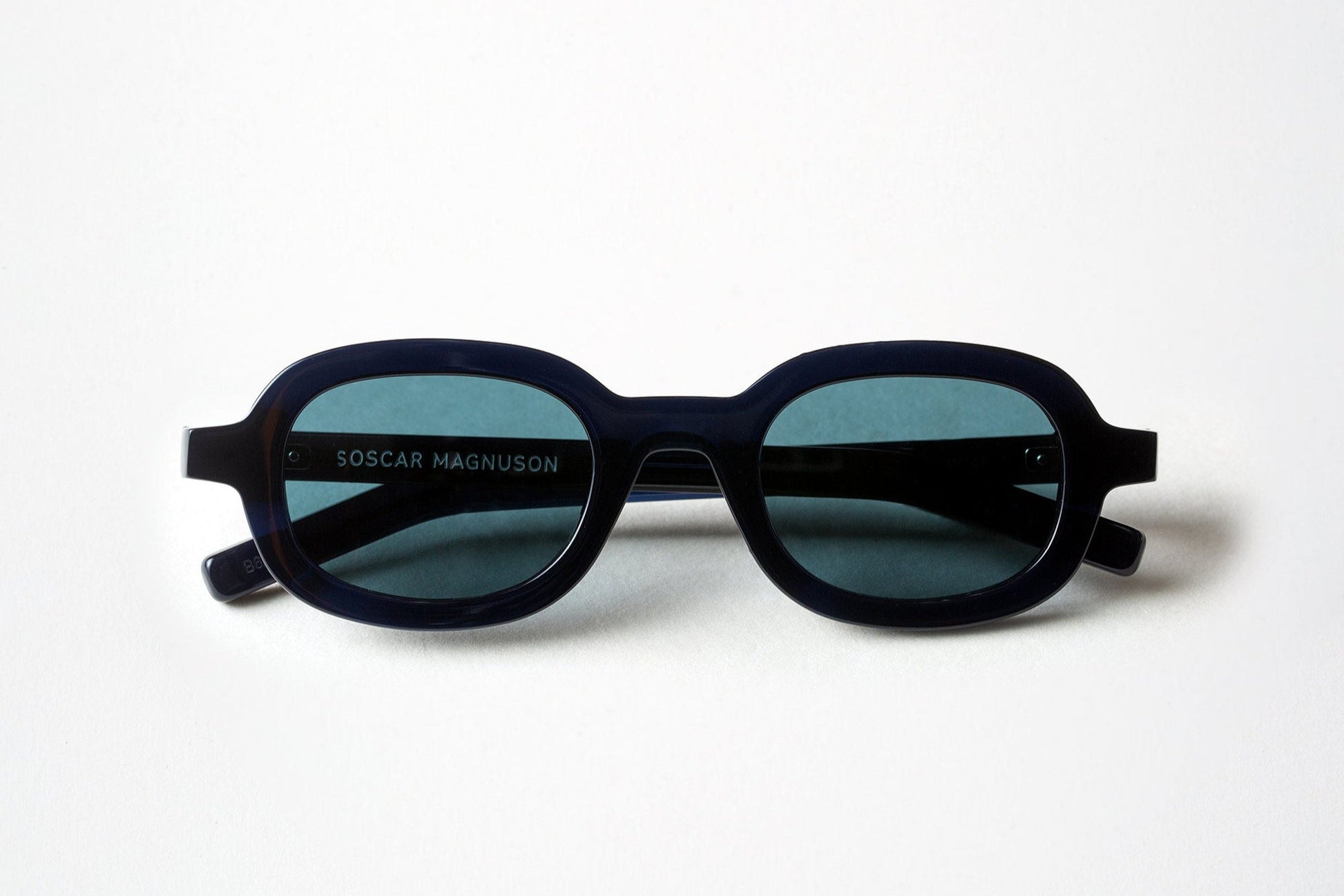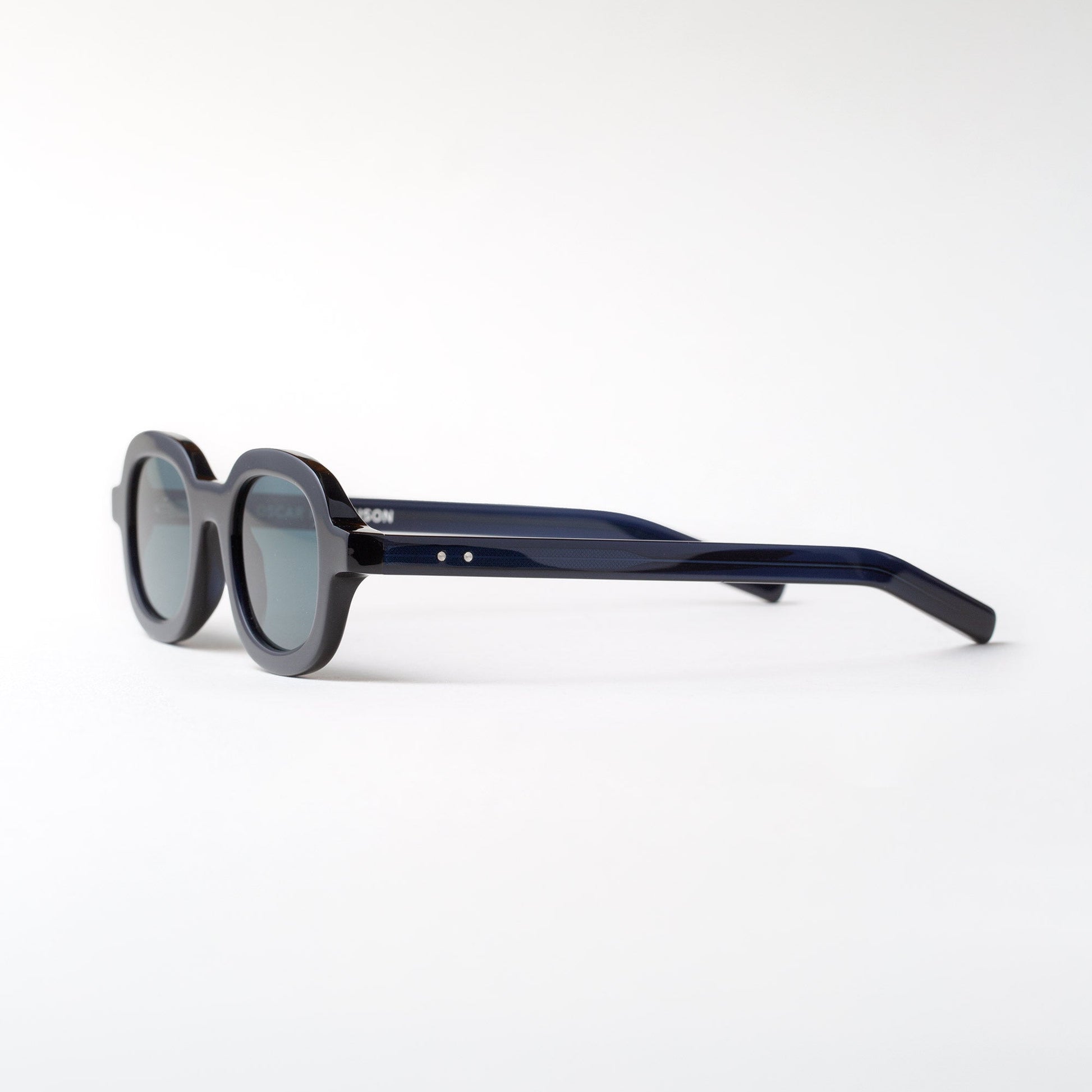 The Oscar Magnuson 'Marc' sunglasses from the OM.2 collection. Handmade with bio-acetate, featuring an oval design and bold construction with uniform temples.