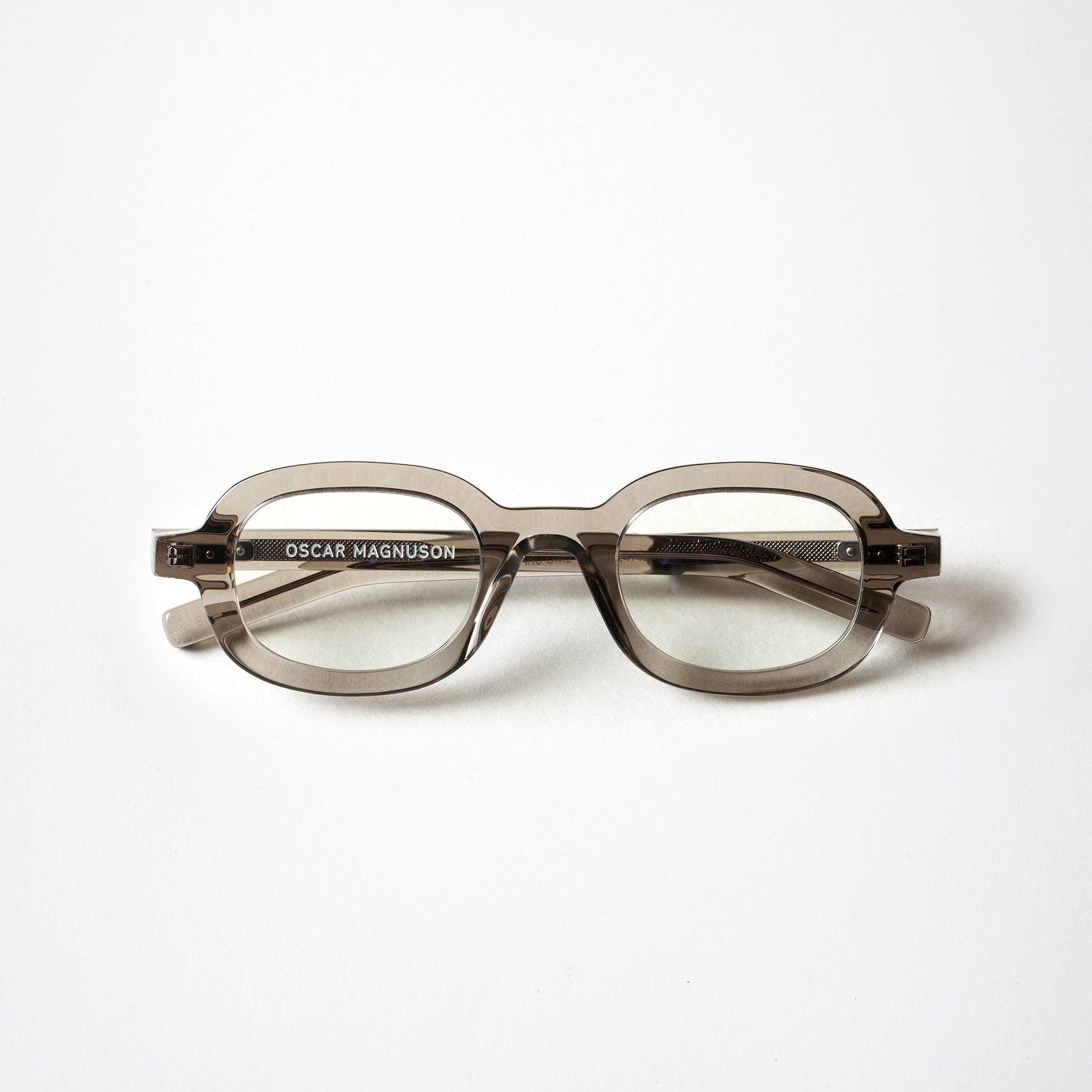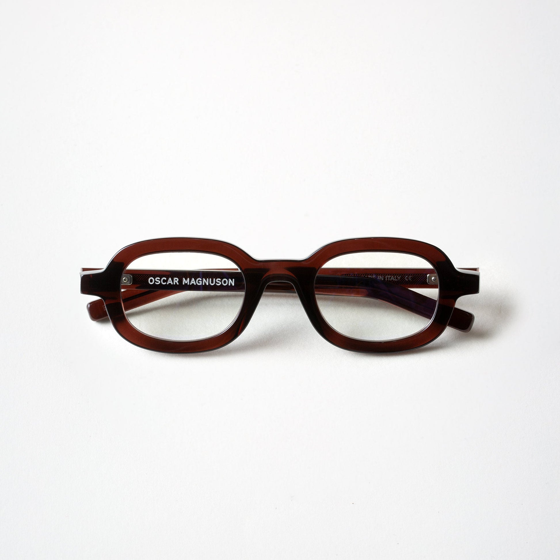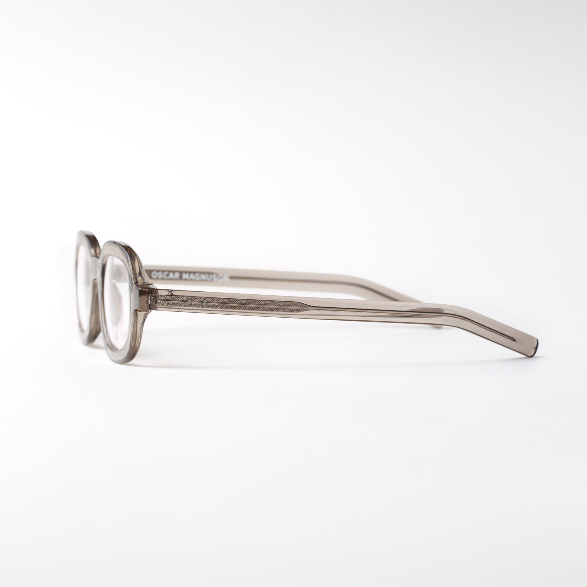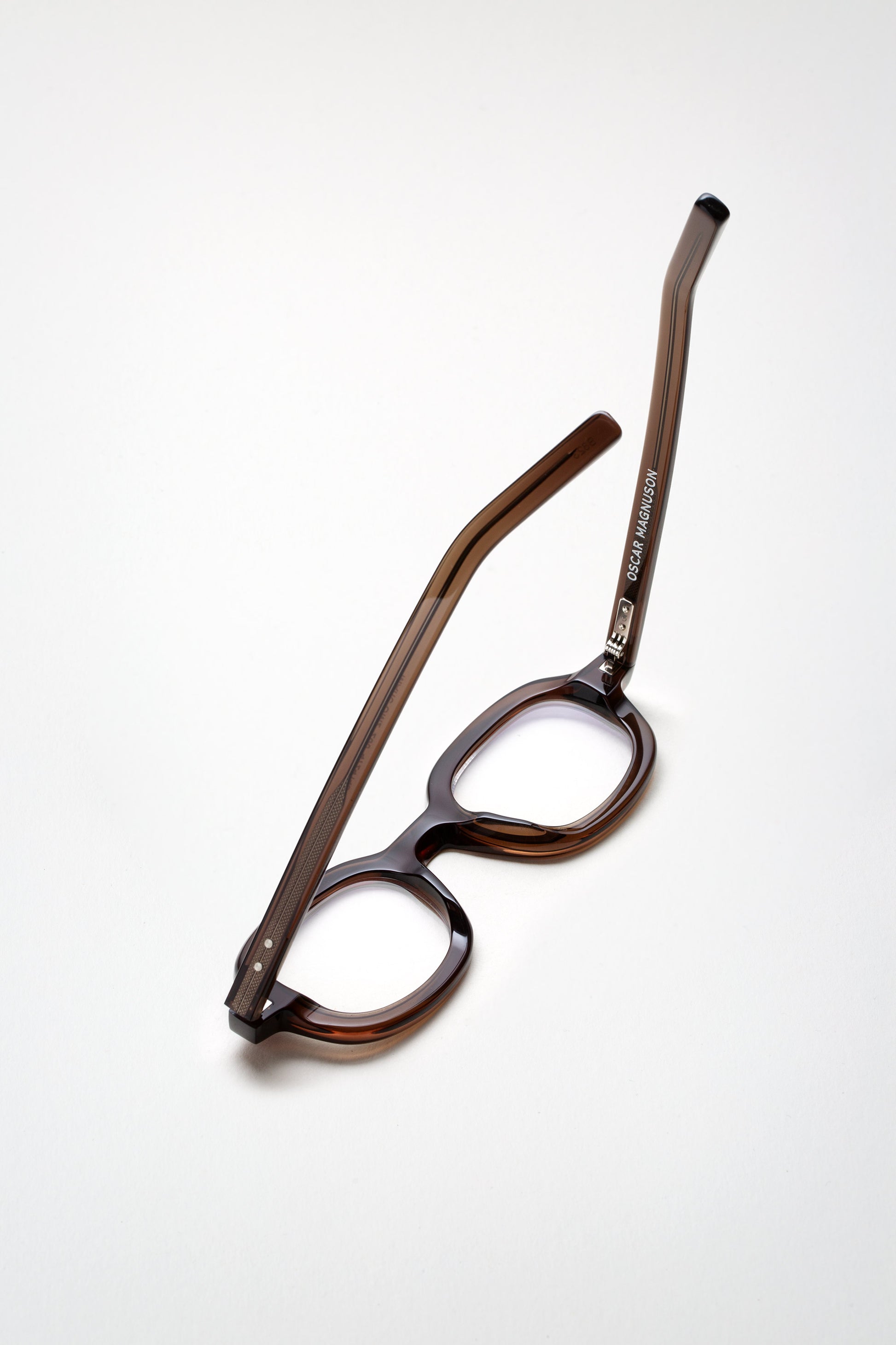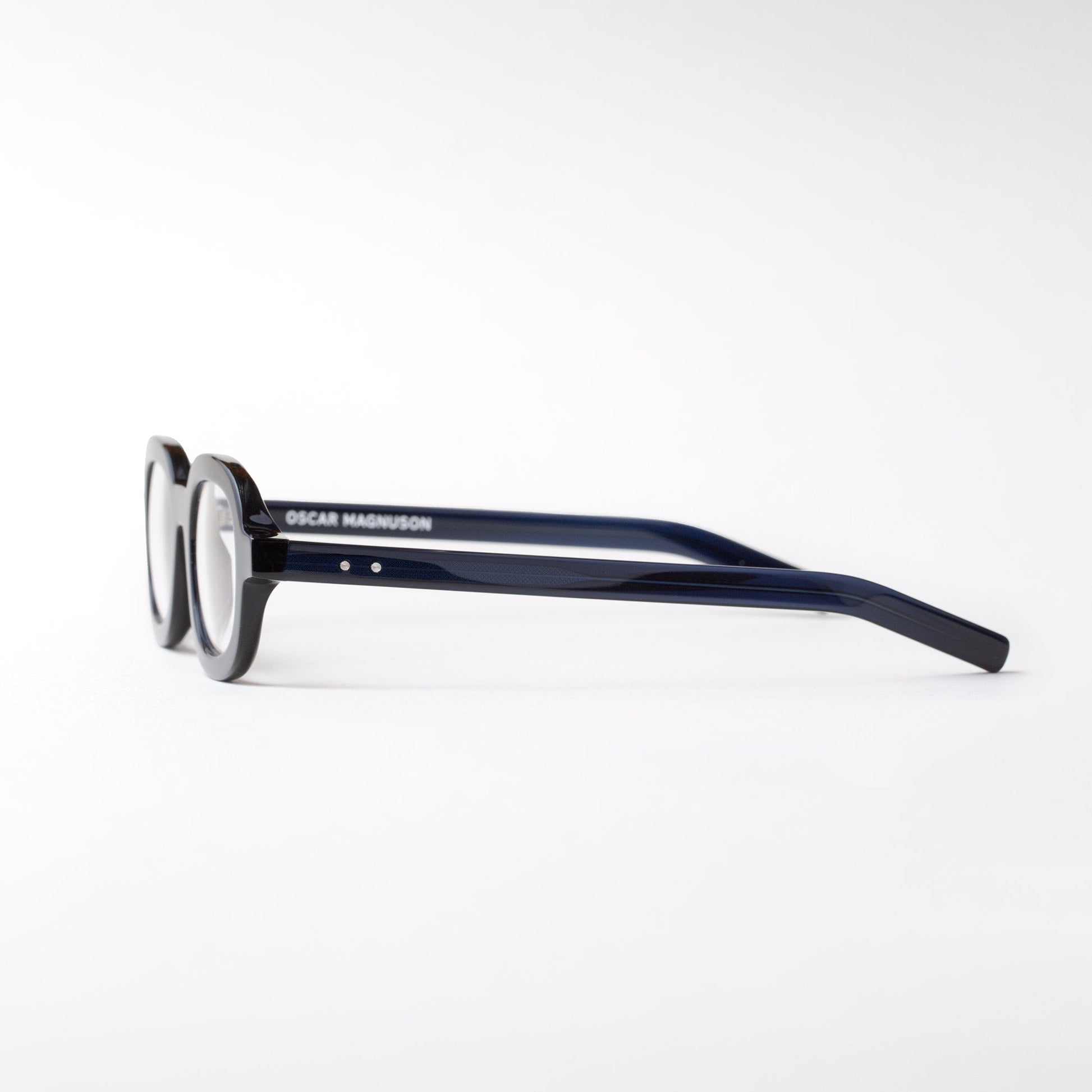 The Oscar Magnuson 'Marc' eyeglasses from the OM.2 collection. Handmade with bio-acetate, featuring an oval design and bold construction with uniform temples.