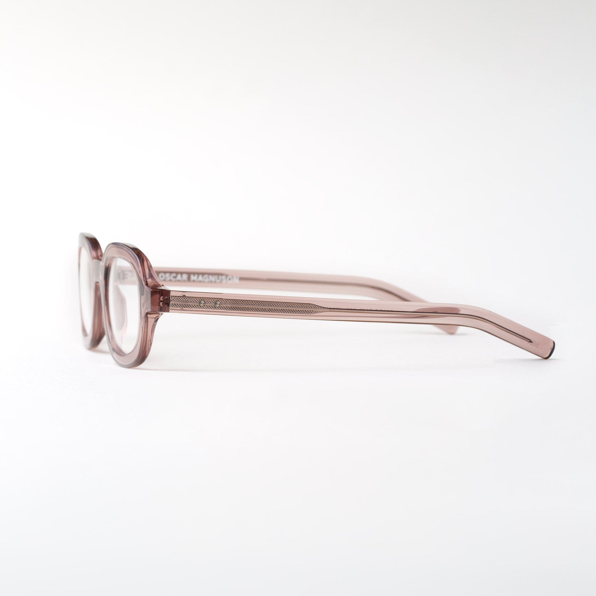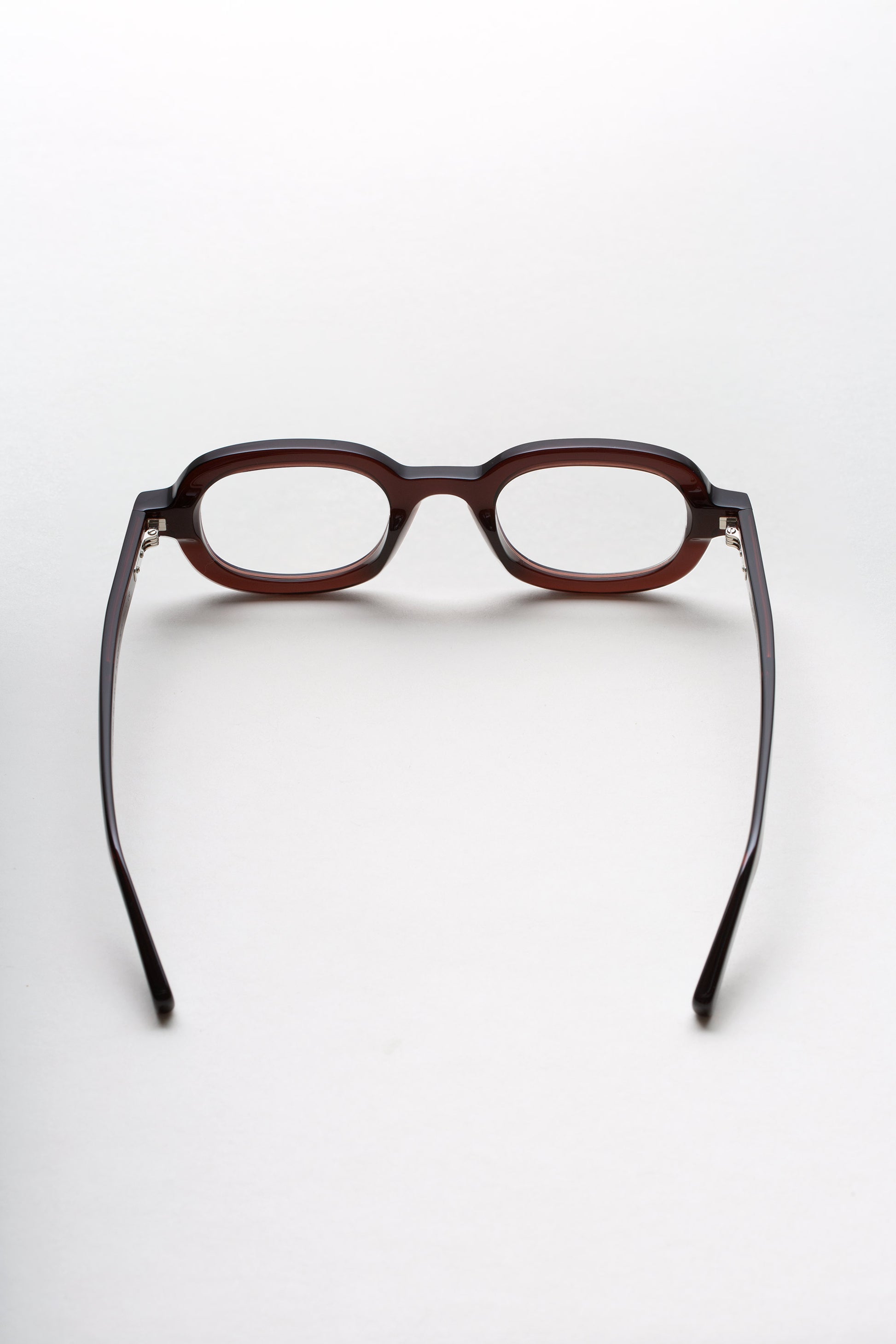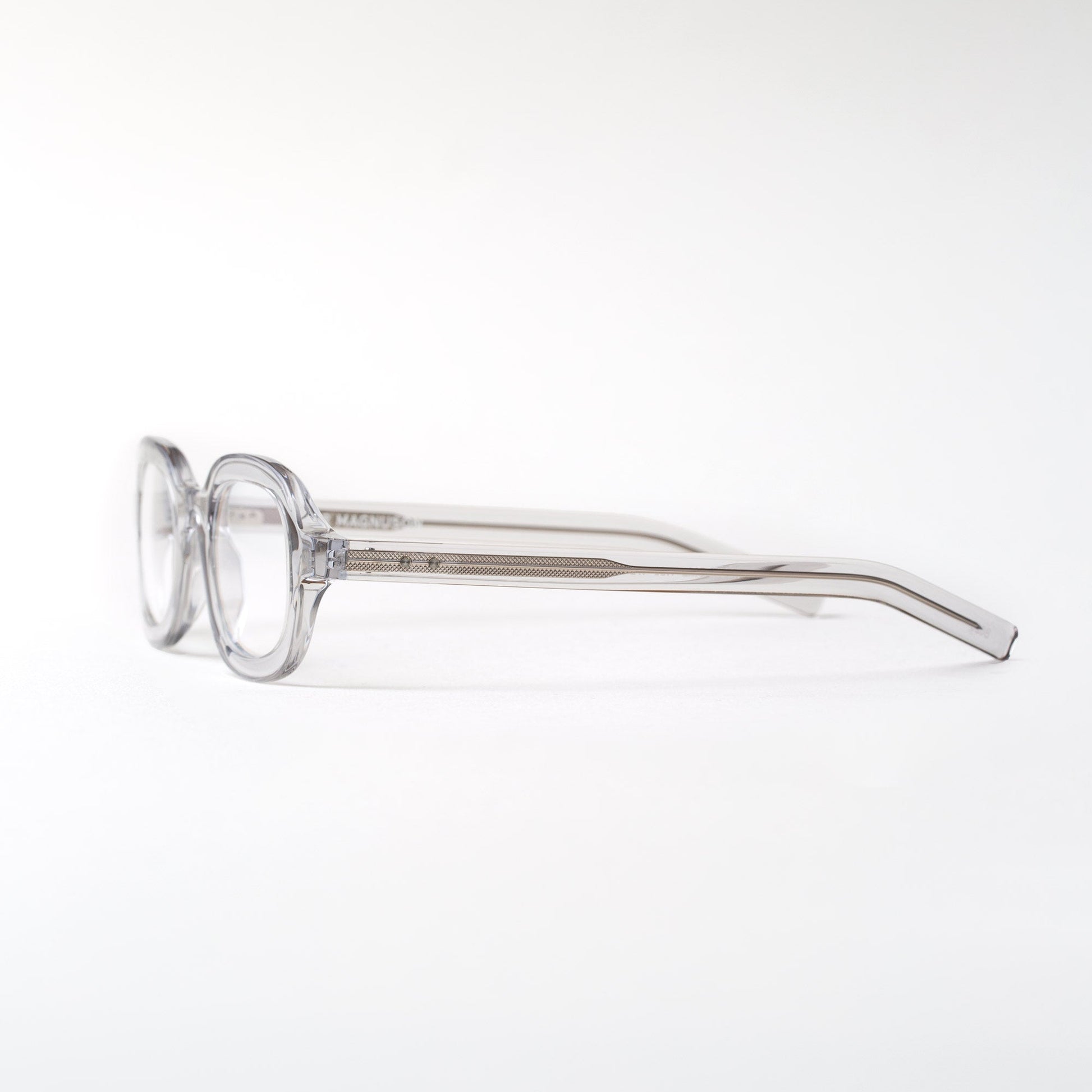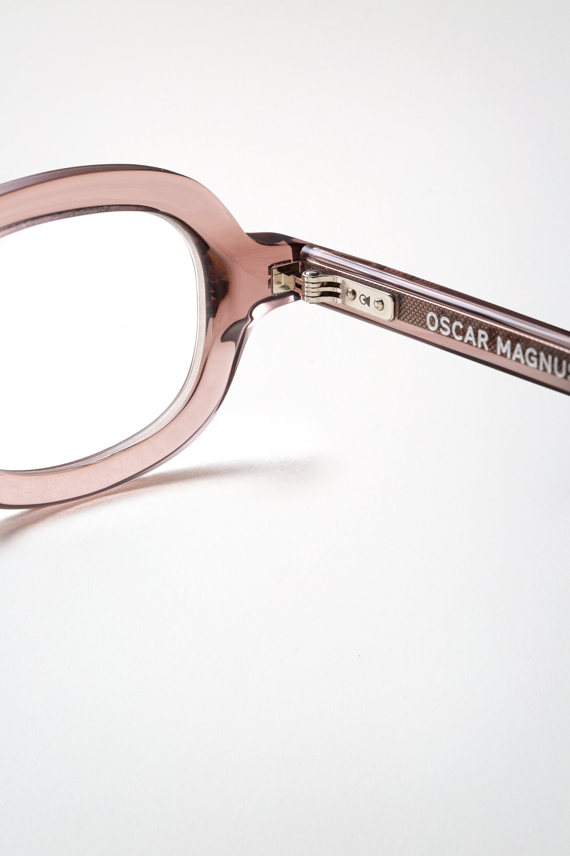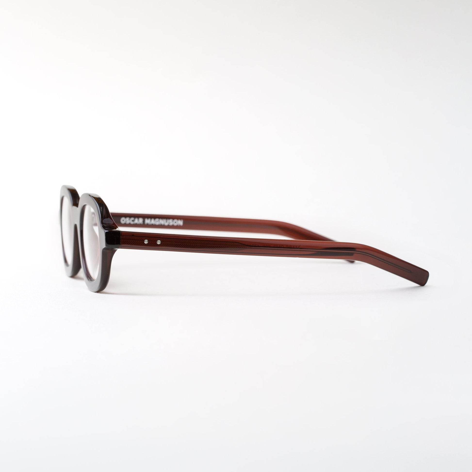 The Oscar Magnuson 'Marc' eyeglasses from the OM.2 collection. Handmade with bio-acetate, featuring an oval design and bold construction with uniform temples.