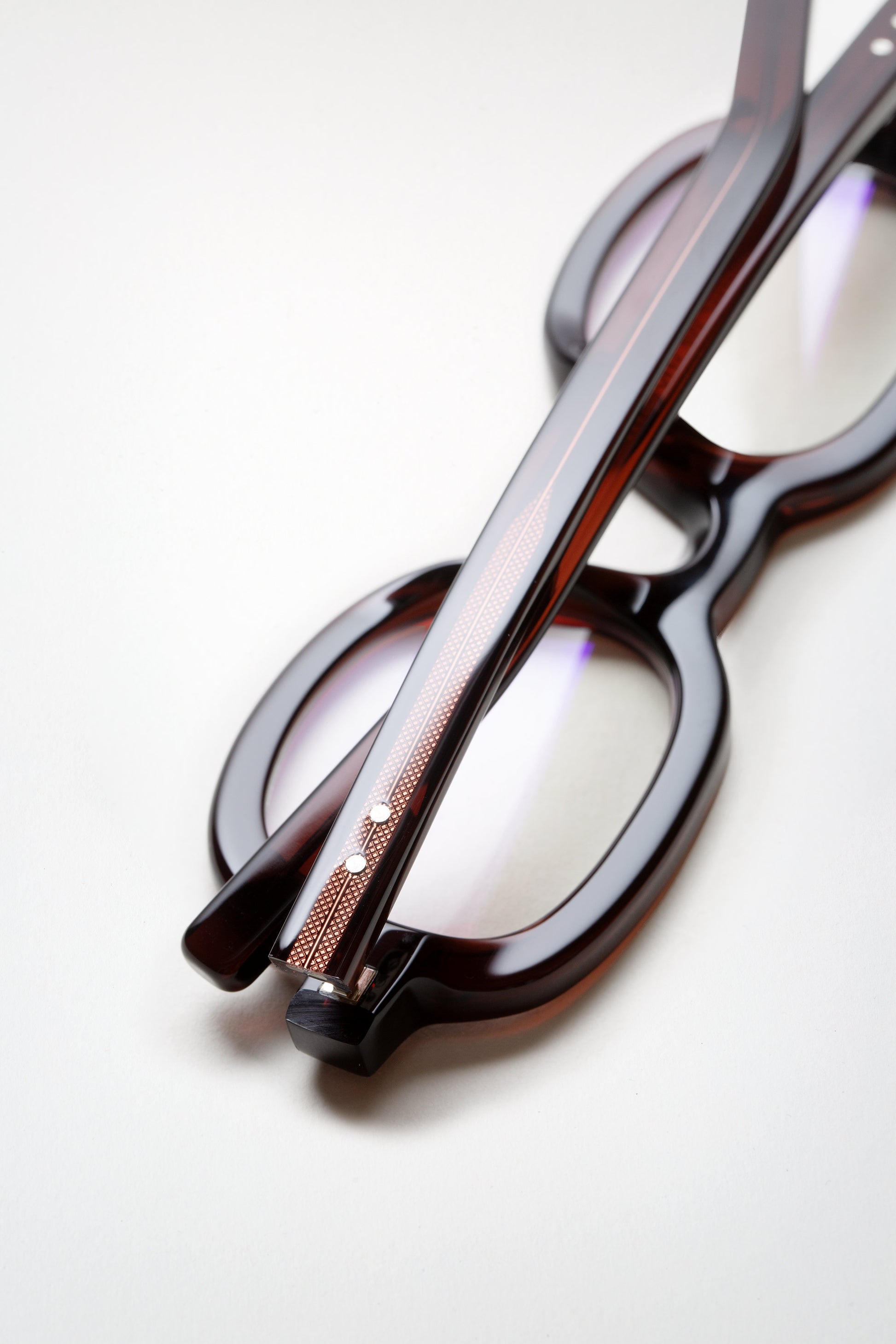 Handcrafted from eco-friendly bio-acetate by highly skilled artisans in our Italian factory. The acetate, derived from wood and cotton fibers, offers a unique touch with a warm, silky feel. Fully biodegradable and 100% recyclable.