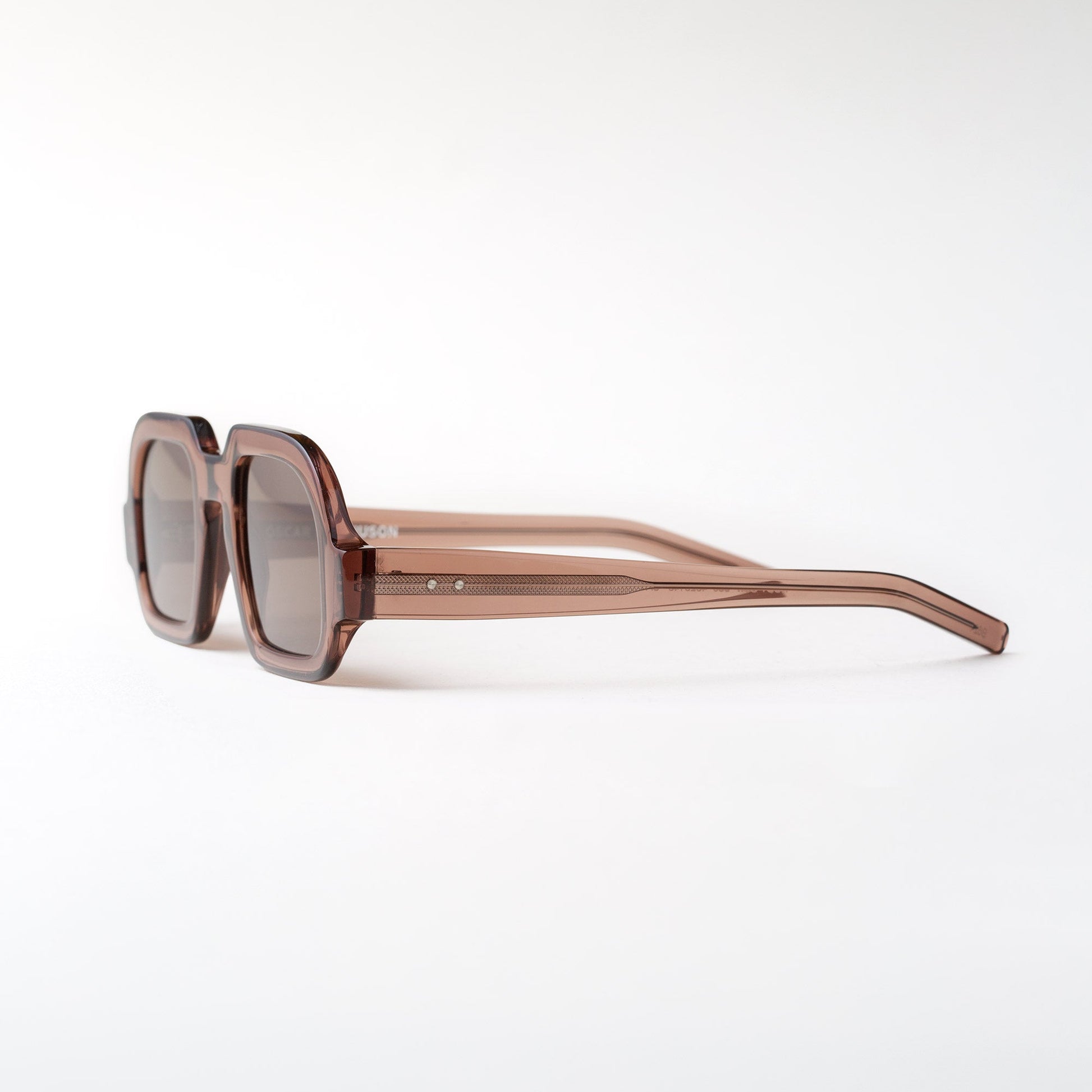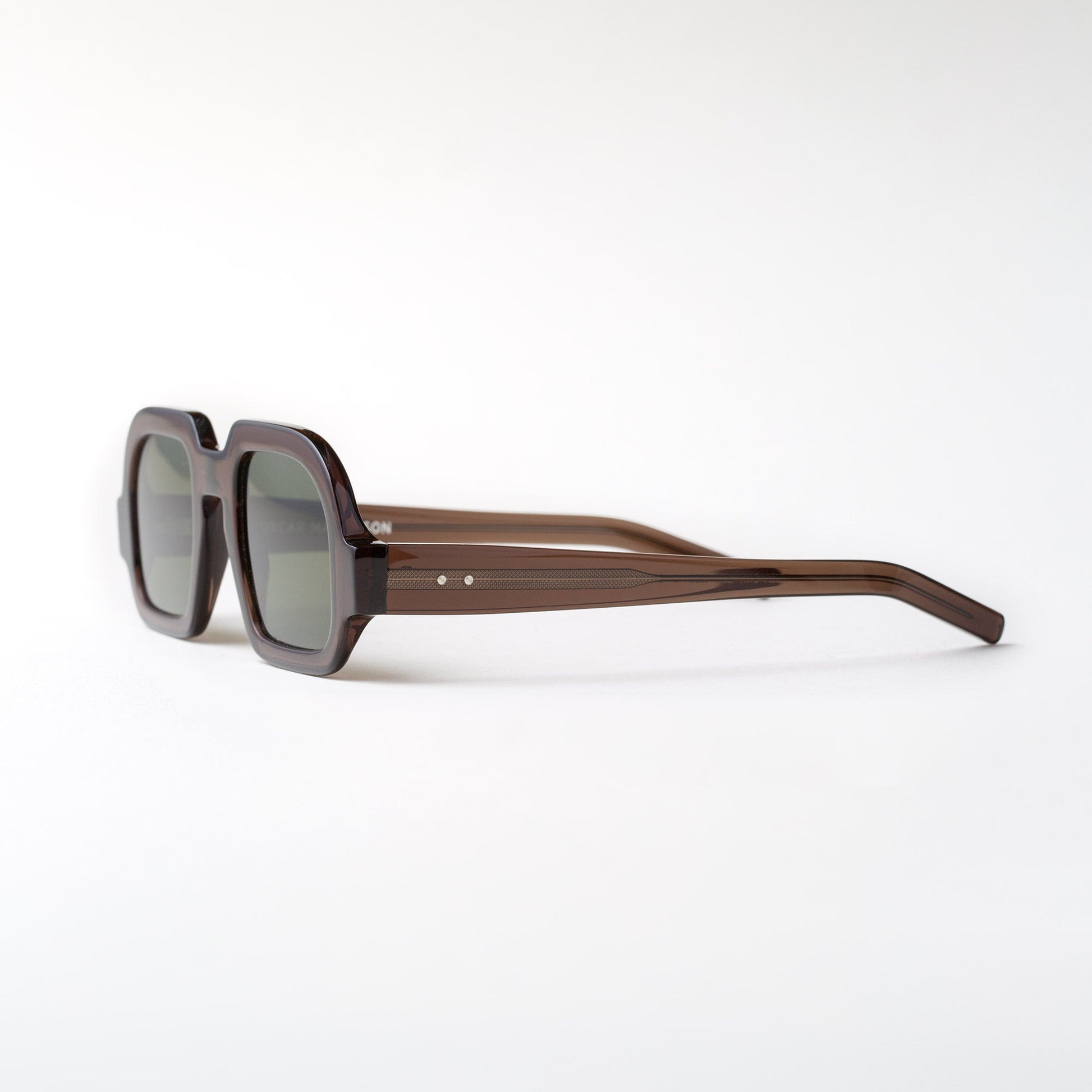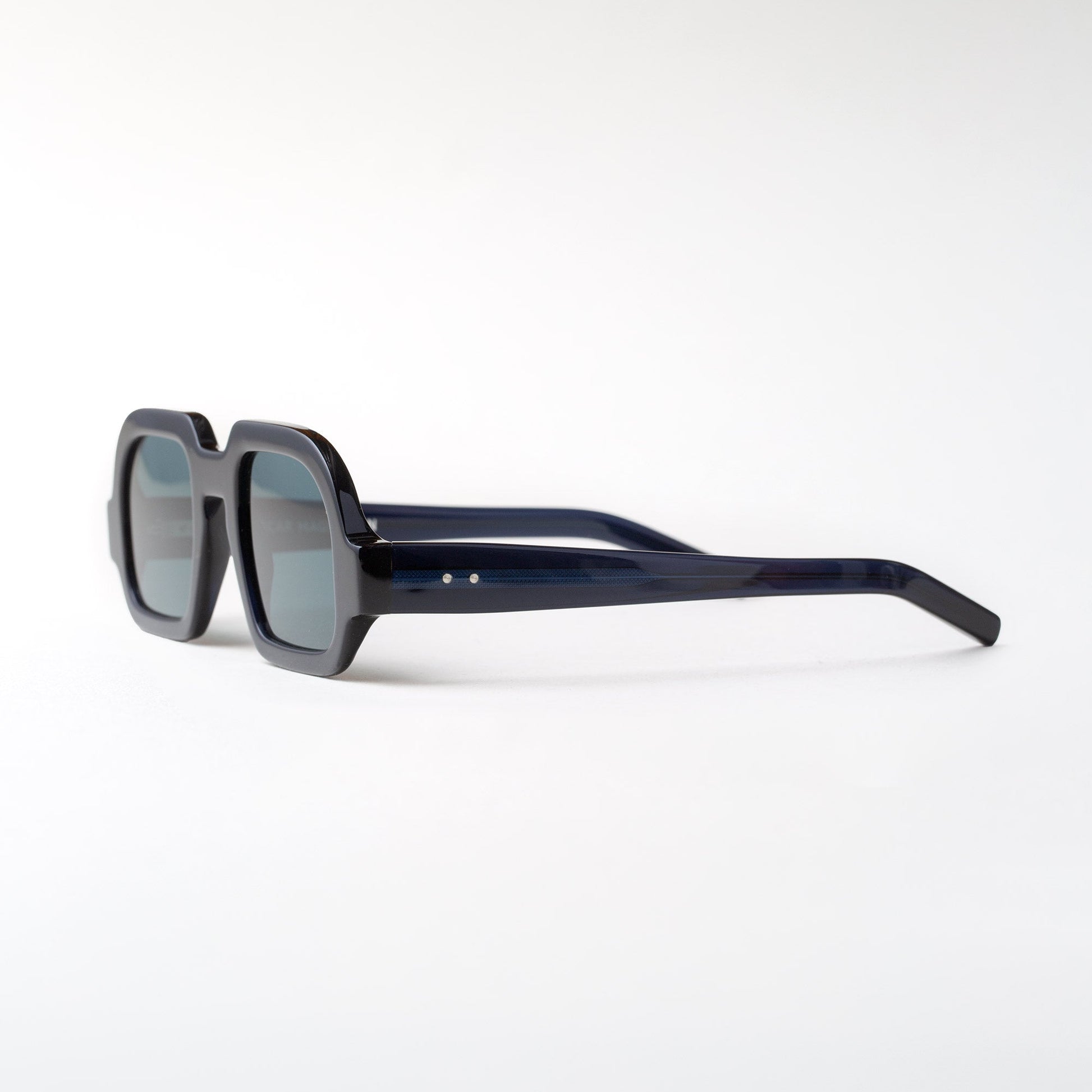 The 'Rudy' sunglasses from the OM.7 collection. Handmade with bio-acetate, featuring an eighties-inspired silhouette, bold construction with dimensional contours, and tapered temples.